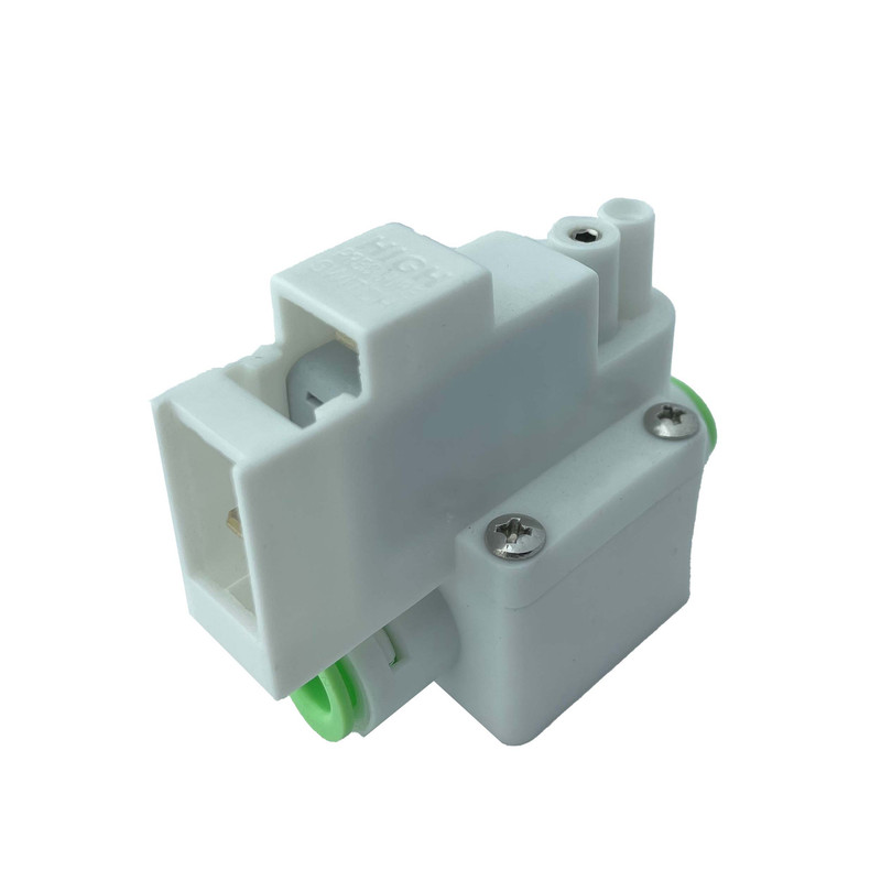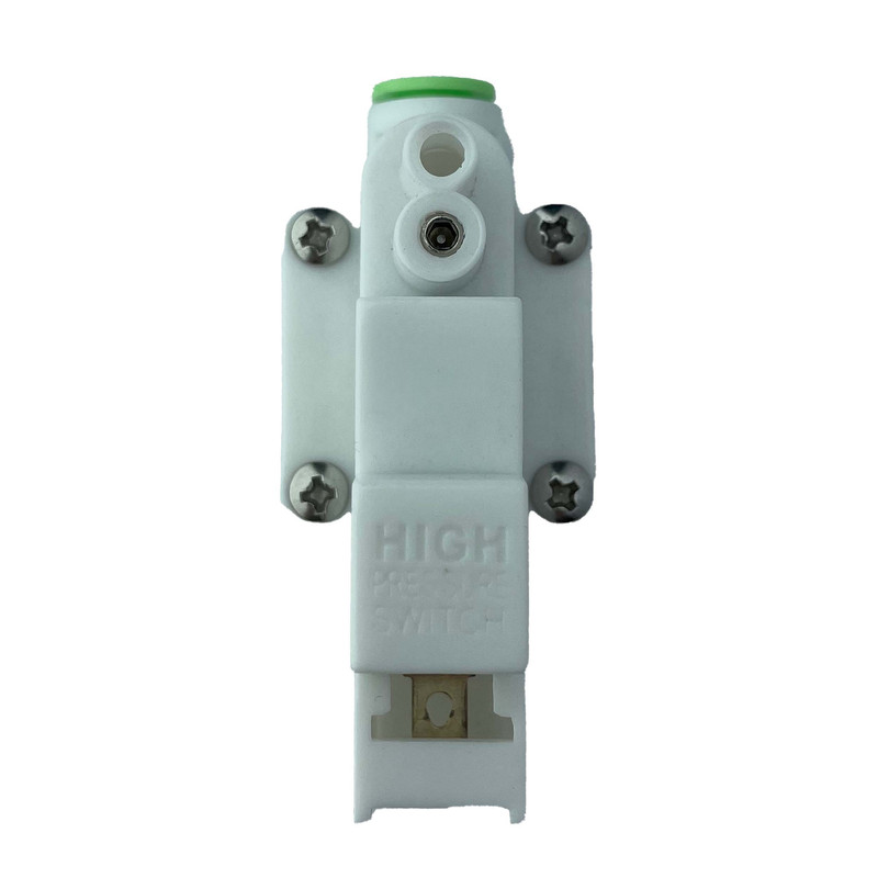 پرشر ها در دستگاه تصفیه آب به عنوان کنترل گر کارکرد دستگاه می باشند. این سوئیچ نرمالی کلوز است، یعنی در حالت عادی جریان برق وصل است. وقتی مخزن پر میشود و شیر مصرف نیز بسته است، فشار مدار آب افزایش مییابد و به دیافراگم داخل سوئیچ، فشار وارد میکند و باعث قطعشدن جریان برق میشود. این سوئیچ دارای یک پیچ تنظیم است. با این پیچ میتوان فشار قطع را تنظیم کرد. محل قرارگیری این قطعه در مدار آب بعد از فیلتر ممبران است. در مدار برق سری با پمپ نصب میشود. این قطعه ساخت شرکت تکومن ویتنام است.